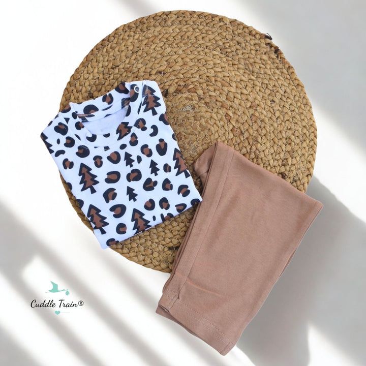 Each set includes a playful printed top paired with comfy, stretchable leggings for easy movement.